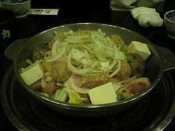 お店は2階のお座敷も含め大箱なので、宴会向き。お客さんのにぎやかな声が常に溢れており、この時は後ろに既に終わった出し物に使われたと思われる着ぐるみが、ふにゃっと寂しく転がっている。