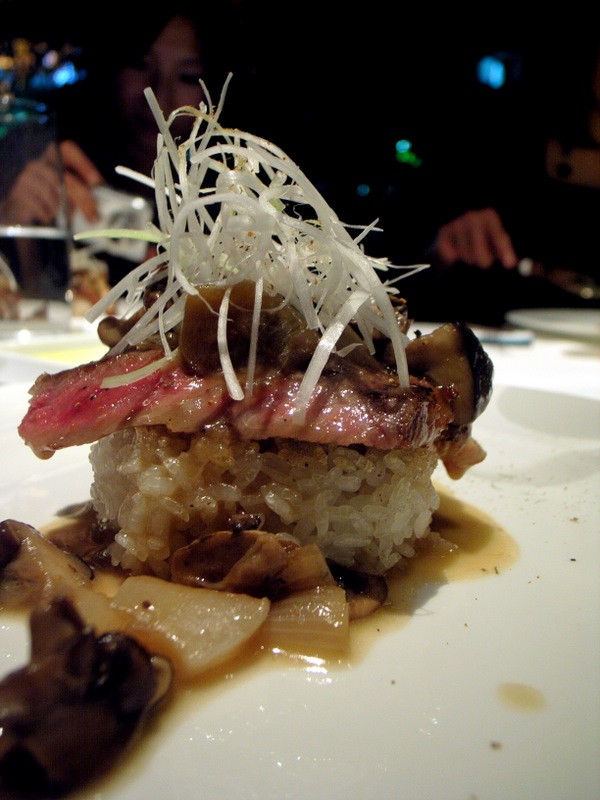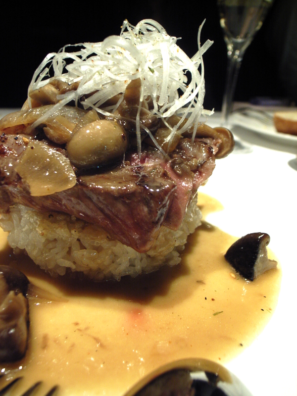 最後にこのコッテリ味っていいですね。たっぷり白髪葱の下にはまず短角牛のステーキ。