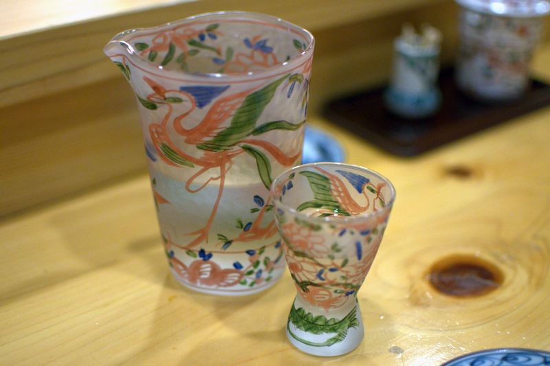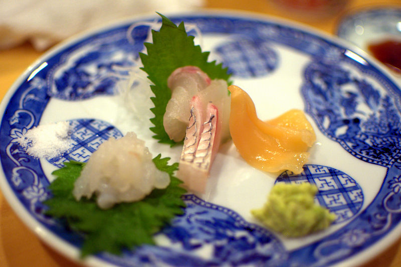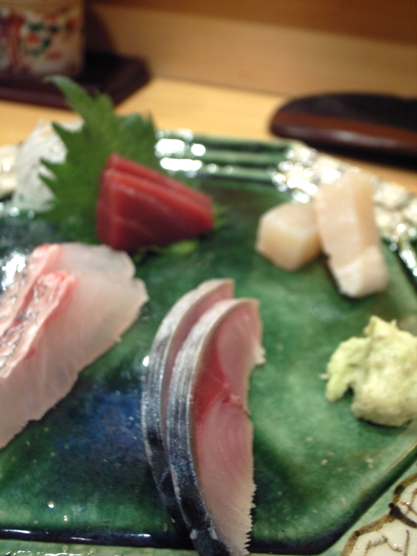お造りは、奥から時計周りに大間のマグロ、平貝、鯖、明石の鯛。お造りは美味しいのだが、感動的に美味しかったのが山葵。長野の真妻山葵という代物で、山芋のようなねっちりした粘りとツンとした辛み、引きのよさがうまい。鰹節と絡めて、これだけでお酒のつまみになるってなもんだ。