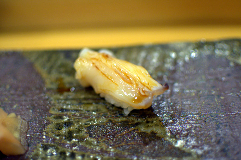 握りの中で特に印象的だった穴子。ふっくらと、しかしやや香ばしさを残した暖かい穴子をダブルで握ってある。なんせうまい。