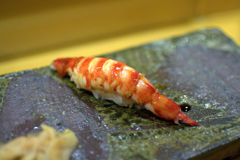 手前から活け絞めのえび、中トロ、大トロ。中トロが今も舌に残る美味しさだった。