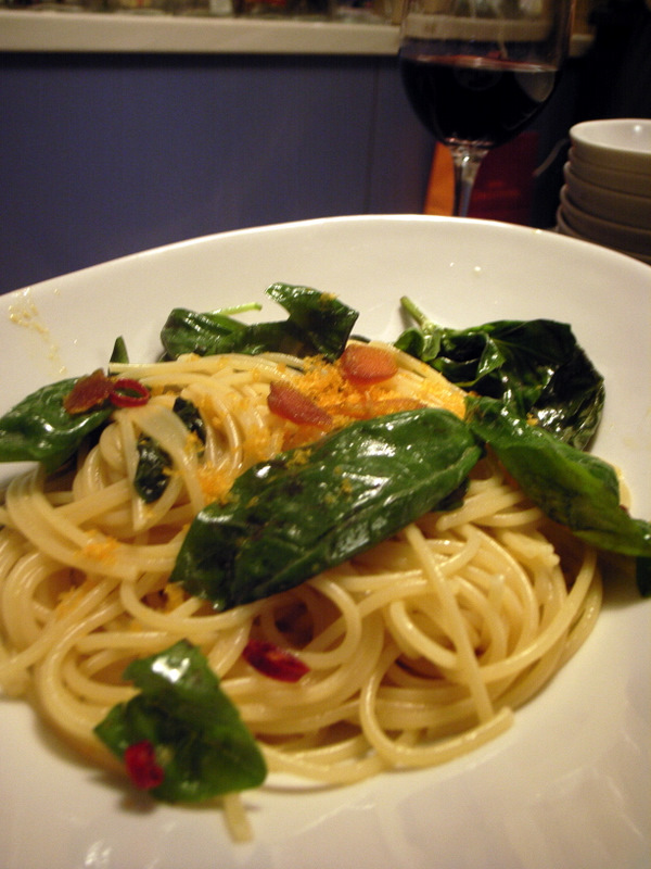 そんな一方で、カラスミ代わりのサメの卵(?)とバジルと唐辛子でちゃちゃっと秀逸パスタを作ってくれたり。