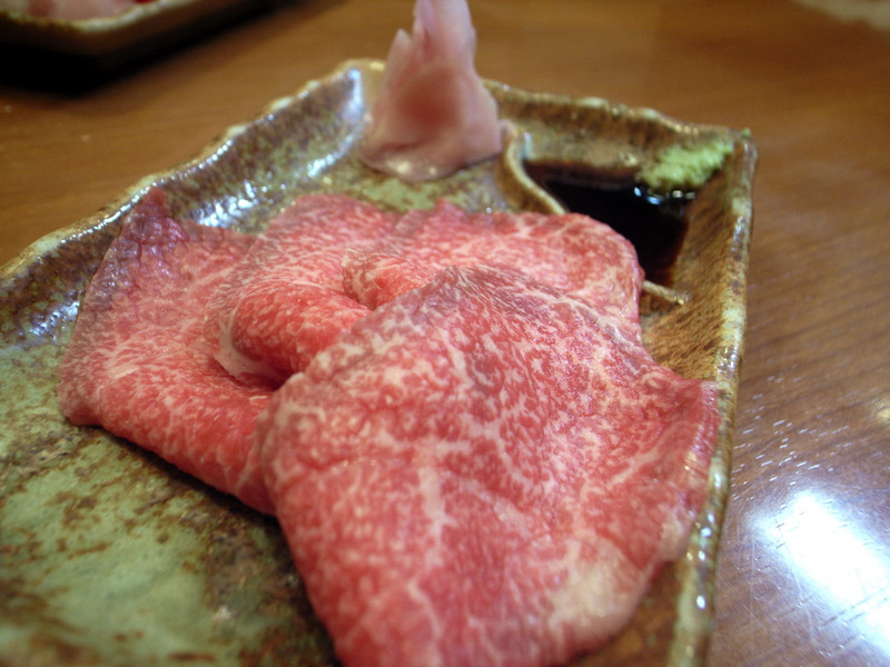 赤味刺し(500円)は、ごくリーズナブル。肉らしい味わいたっぷりのひとつ。