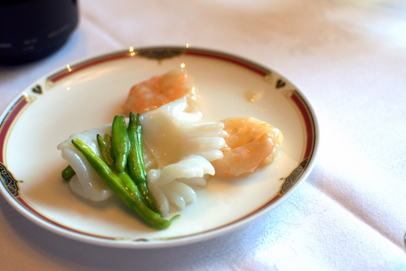 芝海老と紋甲いかの炒め物。百合の芽も入る。