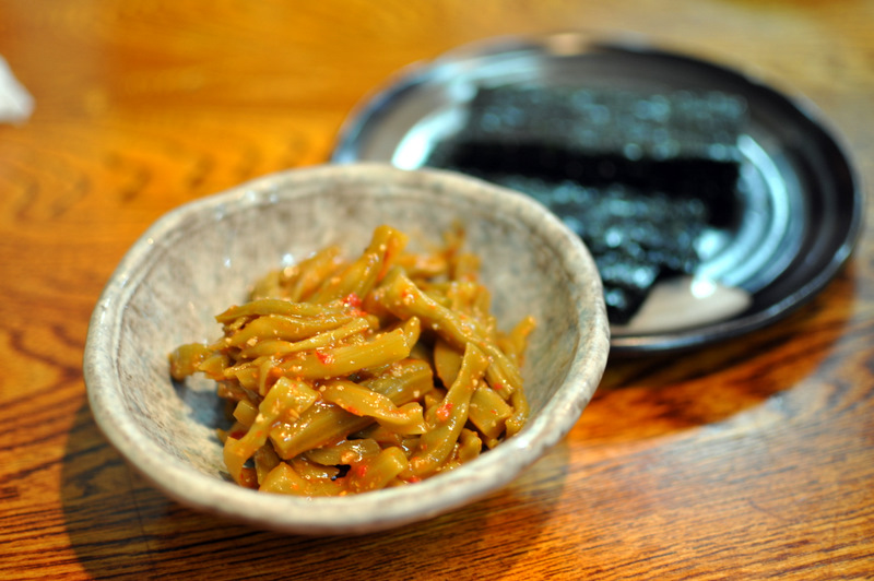 コリコリキムチ(420円)は、山くらげのキムチ。韓国海苔はなんと、100円!10皿頼んでも1,000円。1人1海苔でもいいかも。
