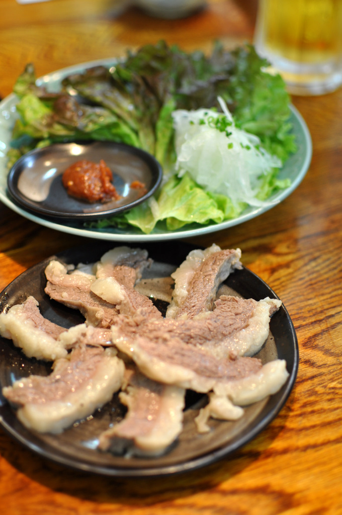 抜群に旨かった塩バラ(1,570円)。1日10人前限定だ。塩の具合、脂の量、味噌、レタス、ネギの食感がかなりいい感じ。焼肉屋ではあるけども、ありつけるならば、間違いなく頼むべきつまみ。