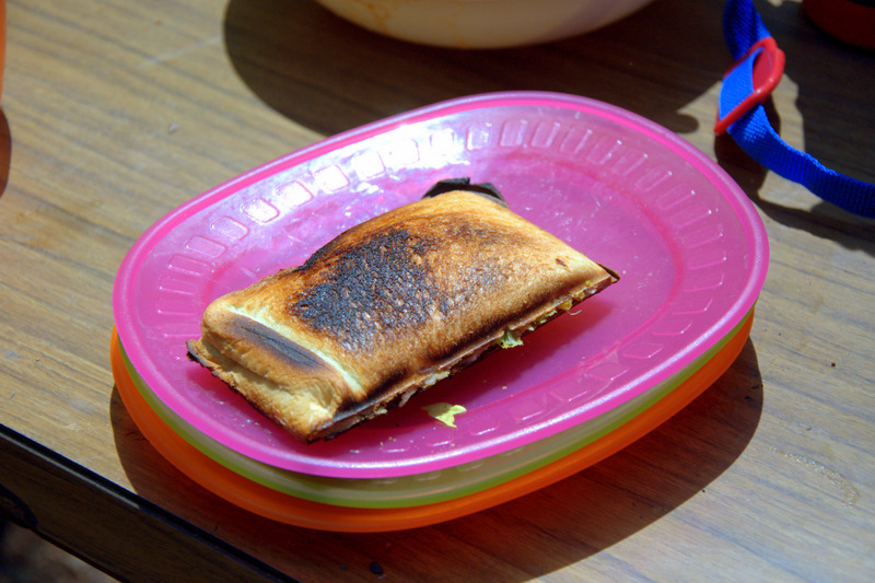 hirorentinaの持ってきてくれた ホットサンドメーカーで作ったホットサンドも美味しい。サンドイッチという料理は、パンを焼くだけで3倍くらい美味しくなるからなあ。