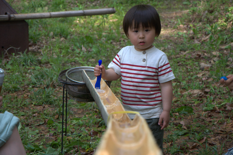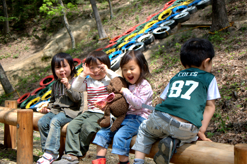キッズは、対照的に自然やアスレチックで思いっきり体を動かして、自分達で遊びを作って楽しんでいるのが微笑ましい。