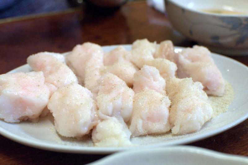 こちらのお店を印象付けるメニューであるこのホソという部位、脂を余り落とさないコプチャンのようだ。 見事な真っ白さでインパクトあり。