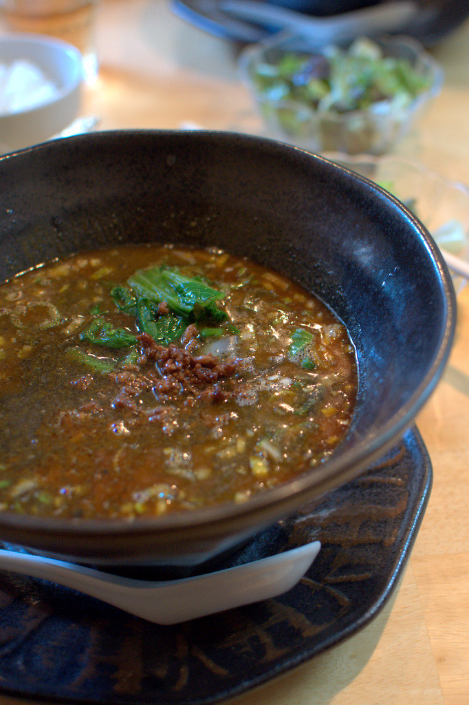 胡麻の風味とバランスする辛みと酸味、食後感をよくする使われている脂の質のよさなどがいい塩梅に完成されて美味しい担々麺ができるのではないか?濃すぎるでもなく、辛いだけでもなく、全体に調和の取れた担々麺、この杏亭の担々麺を食べると、そんな事を改めて考えさせられる。