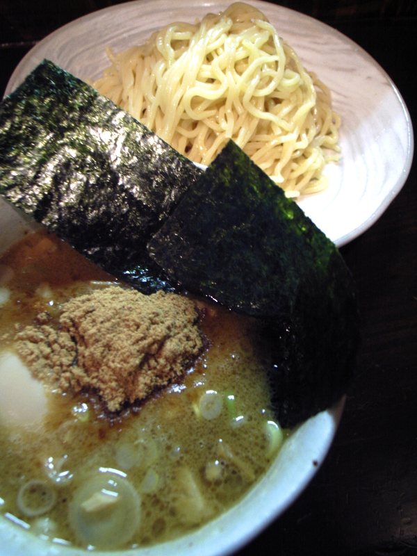 池袋と並んでグルメ不毛地帯(知らないだけ?)と勝手に思っている新宿西口。ここでお昼となって、向かったのはつけ麺の人気店「風雲児」。お昼前ながら店内に人が並んでいる。メニューにはラーメンもあるが、多くの人がつけ麺を注文している。