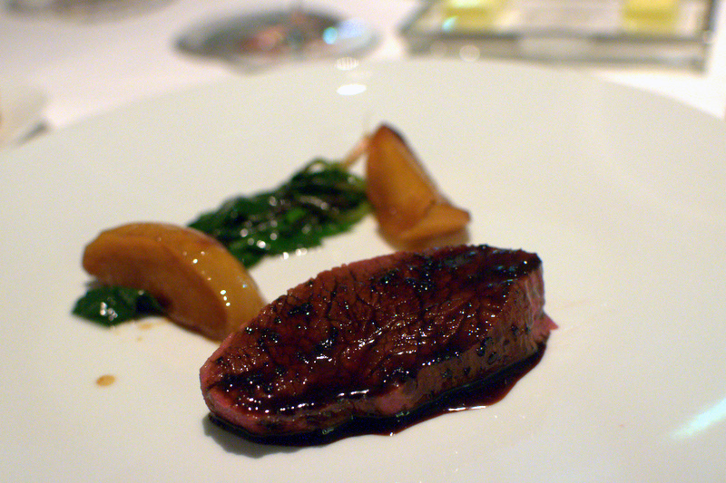 この中で感動したのは鹿。内腿は3週間の熟成を経て、柔らかく、風味よく仕上がっている。低温でレアに火を入れられ、肉としてはとても洗練された滑らかさがベースになって、ジビエらしい風味が軽やかに乗っかってくる。