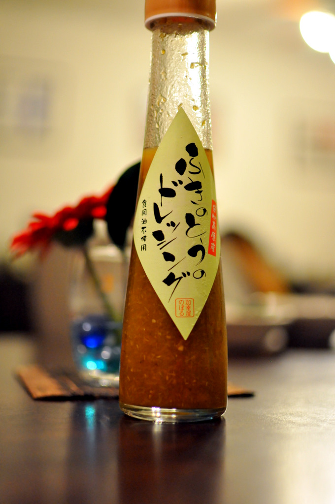 ここ数ヶ月お気に入りのドレッシング「ふきのとうのドレッシング」。ふきのとうの苦味と香りが効いたノンオイルのドレッシングで、なんでもないサラダにも苦味という新鮮なエッセンスを加えてくれる。ドレッシングに苦味、という要素が面白い。岩手や青森のふきのとうが使われていて、岩手に時々帰省する義母に購入してきてもらうのだ。