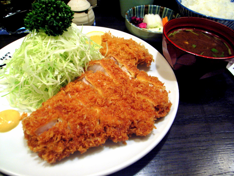 恐らく6食くらいで売り切れてしまう、特上ロース。ロースながら脂をほぼ落としてあるのに、非常に柔らかく、一方豚らしい筋繊維の程よい弾力がある。岩塩で食べると、上質な豚の甘みがひろがるし、酸味が効いた甘みのあるソースはスリたてのゴマの香ばしさとあいまって、これまた食欲をそそる、カツのコーティング材になる。