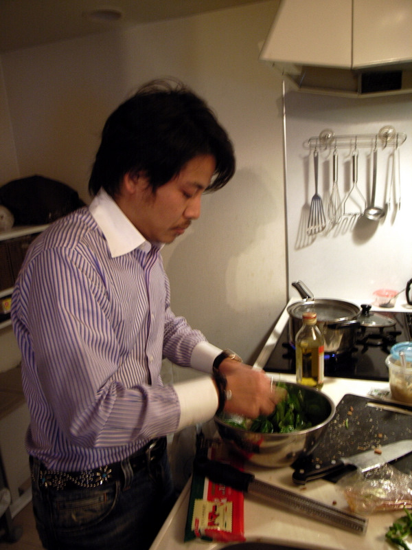 昼間の料理本撮影の後、ご近所の方々と我が家で飲み食い。kyahさん夫妻とhirorentina夫妻、そして毎度どーものワッシー夫妻。しかし、hirorentinaさんのパスタは抜群ですよ。抜群です。体に染み付いたパスタ感覚が素晴らしくて、テケトーなのに、絶妙。